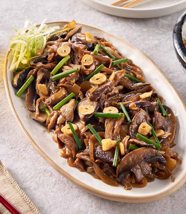 Una aromática salsa de setas elaborada con shiitake, setas de ostra y champiñones, cocinada a fuego suave con Salsa de Soja Naturalmente Fermentada Kikkoman, hojas de laurel y vinagre de arroz. Un plato sencillo y reconfortante, de sabor intenso y con un sutil toque asiático.