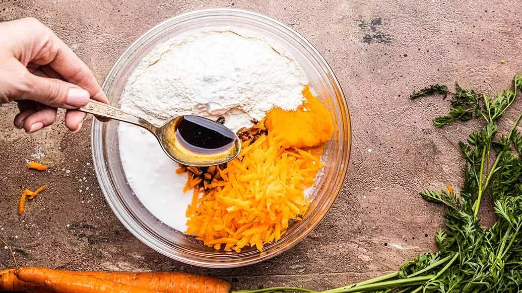 320 g de yogur vegano natural – 120 ml de leche vegetal – 60 g de puré de calabaza – 1 zanahoria – 150 g de harina de trigo – 1 cucharadita de levadura en polvo – 1 cucharada Kikkoman Salsa De Soja con menos sal naturalmente fermentada