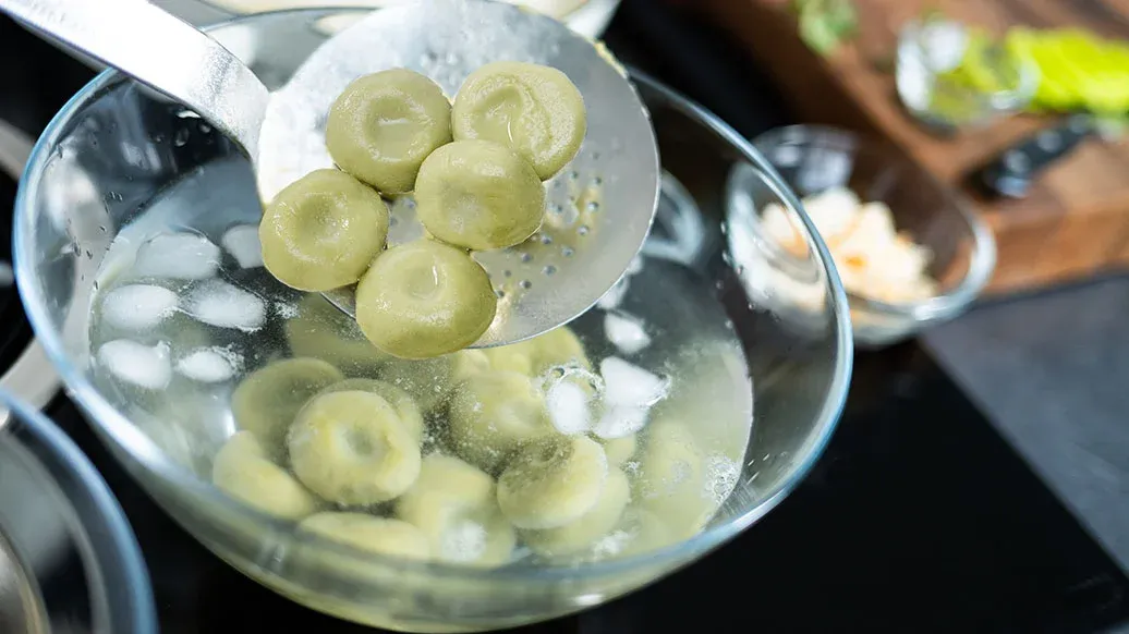 Cueza los dumplings en abundante agua hirviendo durante 5–7 minutos (vea la sección de consejos).