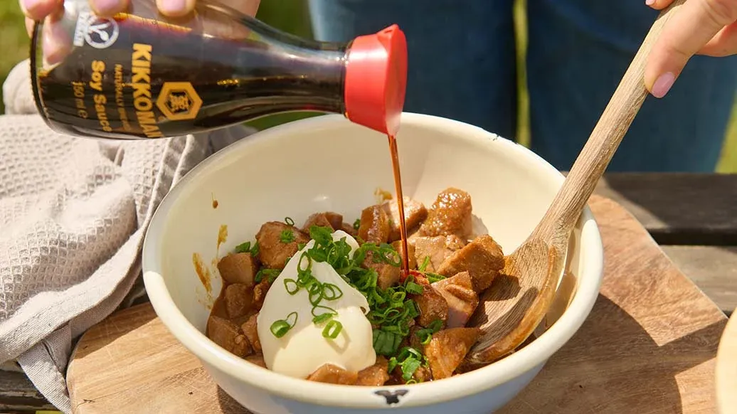 15 g de cebollino – 1 cucharada de mayonesa – ½ cucharada Kikkoman Salsa de Soja naturalmente fermentada