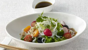 Los fideos udon también provienen de Japón, el hogar de Kikkoman. Al igual que los fideos europeos, están hechos de harina de trigo, sal de mesa y agua. Son los fideos más gruesos de la cocina japonesa y a menudo se sirven en caldo caliente. El caldo consiste en una decocción de pescado (dashi), salsa de soja y mirin, en ocasiones aderezado con chile picante (shichimi). Se suele complementar con cebolleta picada, cangrejo y verduras en masa de tempura (kakiage) o tofu frito (aburaage) y kamaboko, un pastel de pescado en forma de media luna. Los fideos udon, el caldo y la guarnición varían de una región a otra. Los fideos udon son fáciles de saltear y, como Yaki-Udon, van bien con varias verduras y carne o pescado. En verano también se comen fríos. En sopa, ensalada o salteados: los demás ingredientes se adaptan siempre a la estación del año.